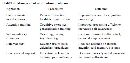 Sohlberg, M. M., & Mateer, C. A. (2001). Improving attention and managing attentional problems: Adapting rehabilitation techniques to adults with ADD. Annals of the New York Academy of Sciences, 931(1), 359-375